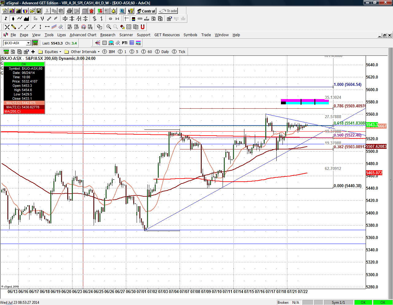 ASX 200 Index: From Fibonacci extension in 60 min chart I can see a high around 5570 for today and no more than 5582.